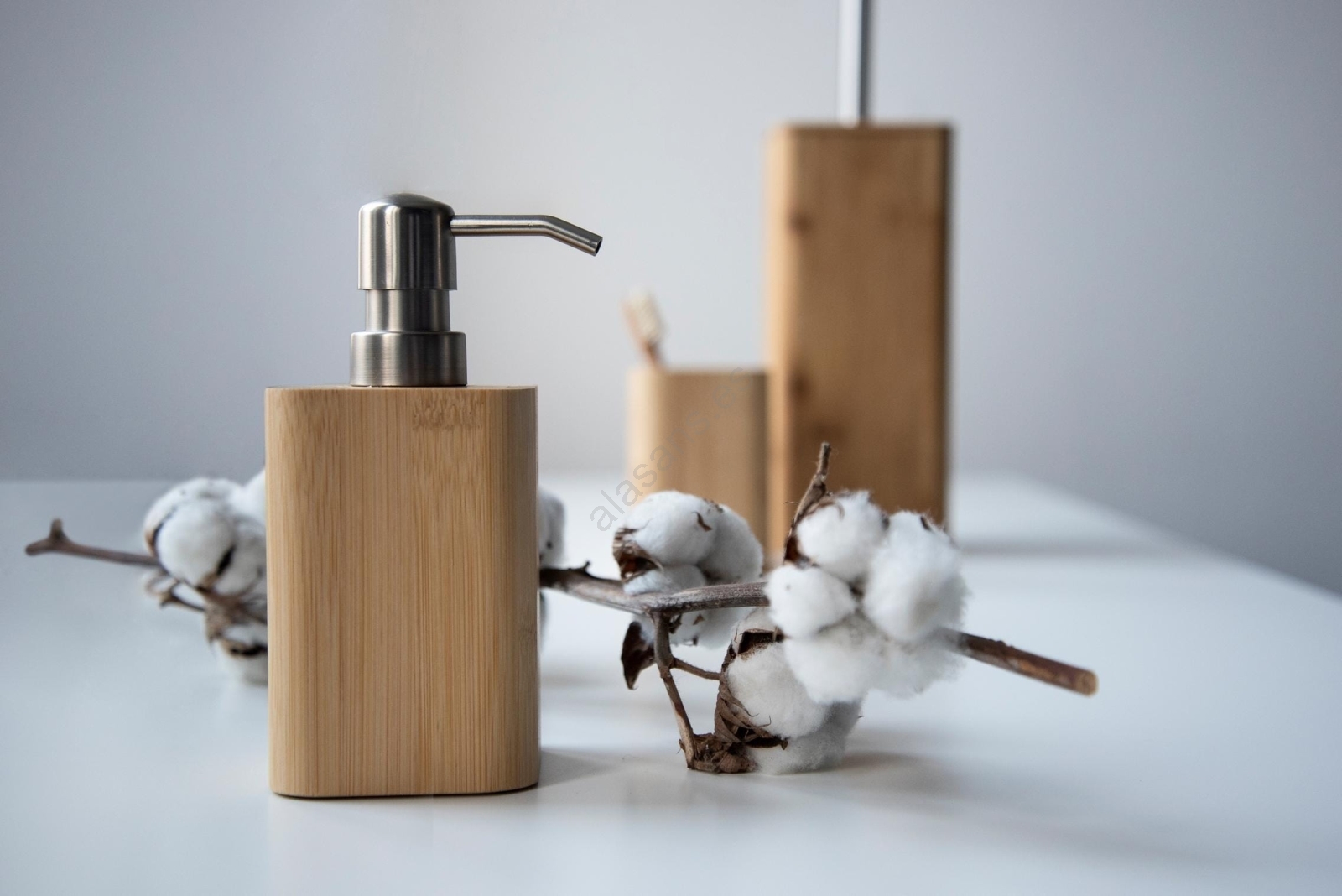 • Elegante set para WC de bambú natural que aporta una atmósfera acogedora al baño.