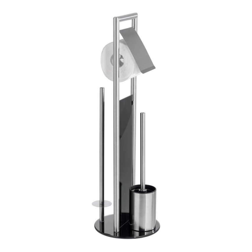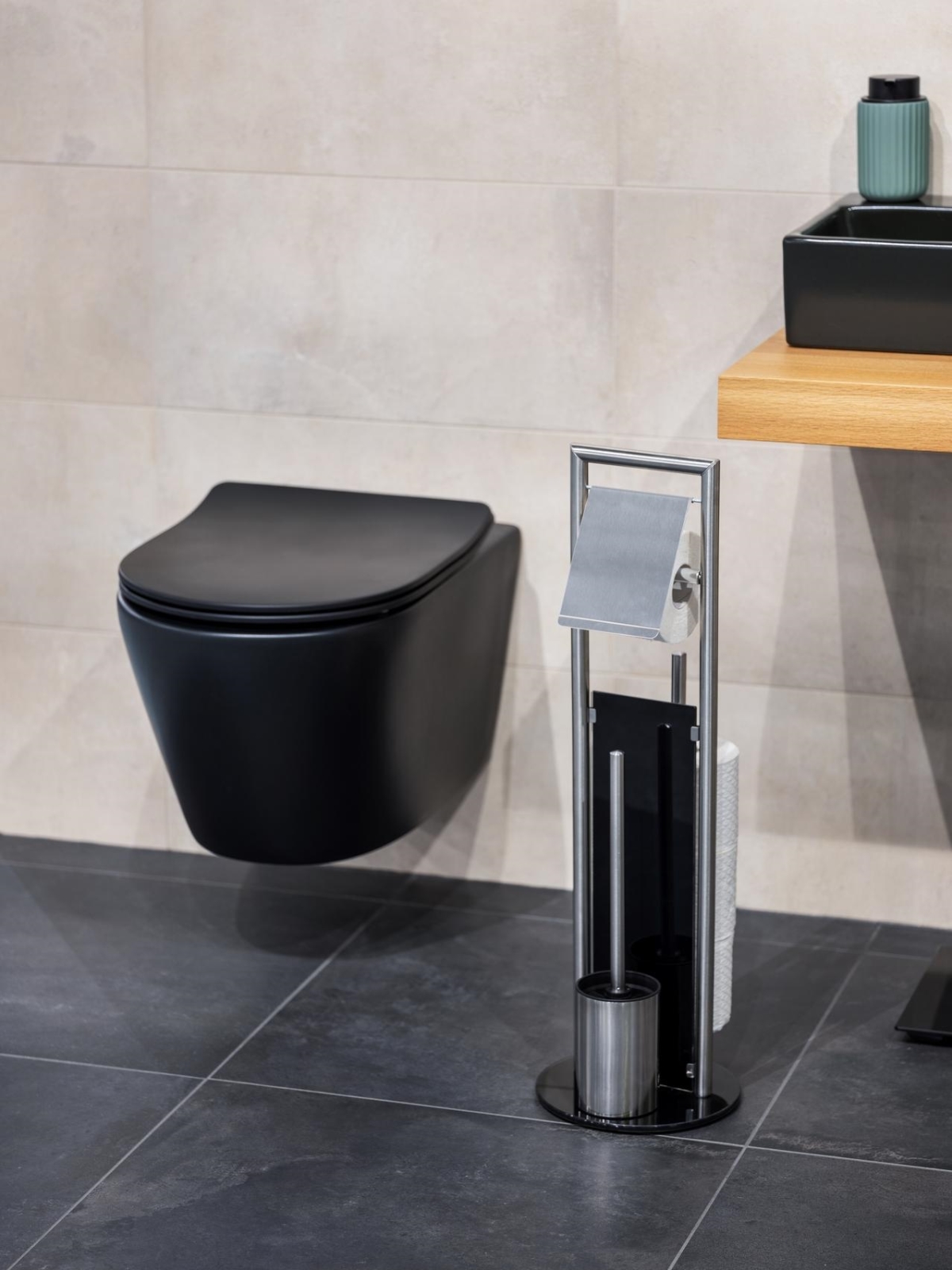 • Multifuncional 3 en 1 – portarrollos de papel higiénico, depósito para rollos de repuesto y soporte con escobilla para WC.