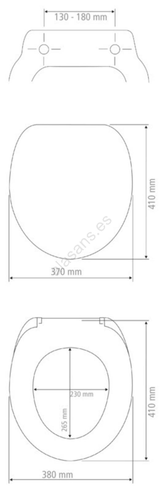 • Dimensiones de la tapa: 37 × 41 cm, parte exterior del asiento: 38 × 41 cm, aro interior: 23 × 26,5 cm.