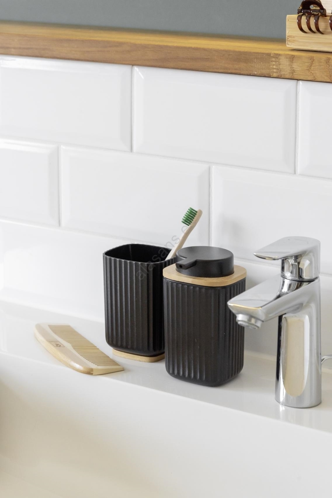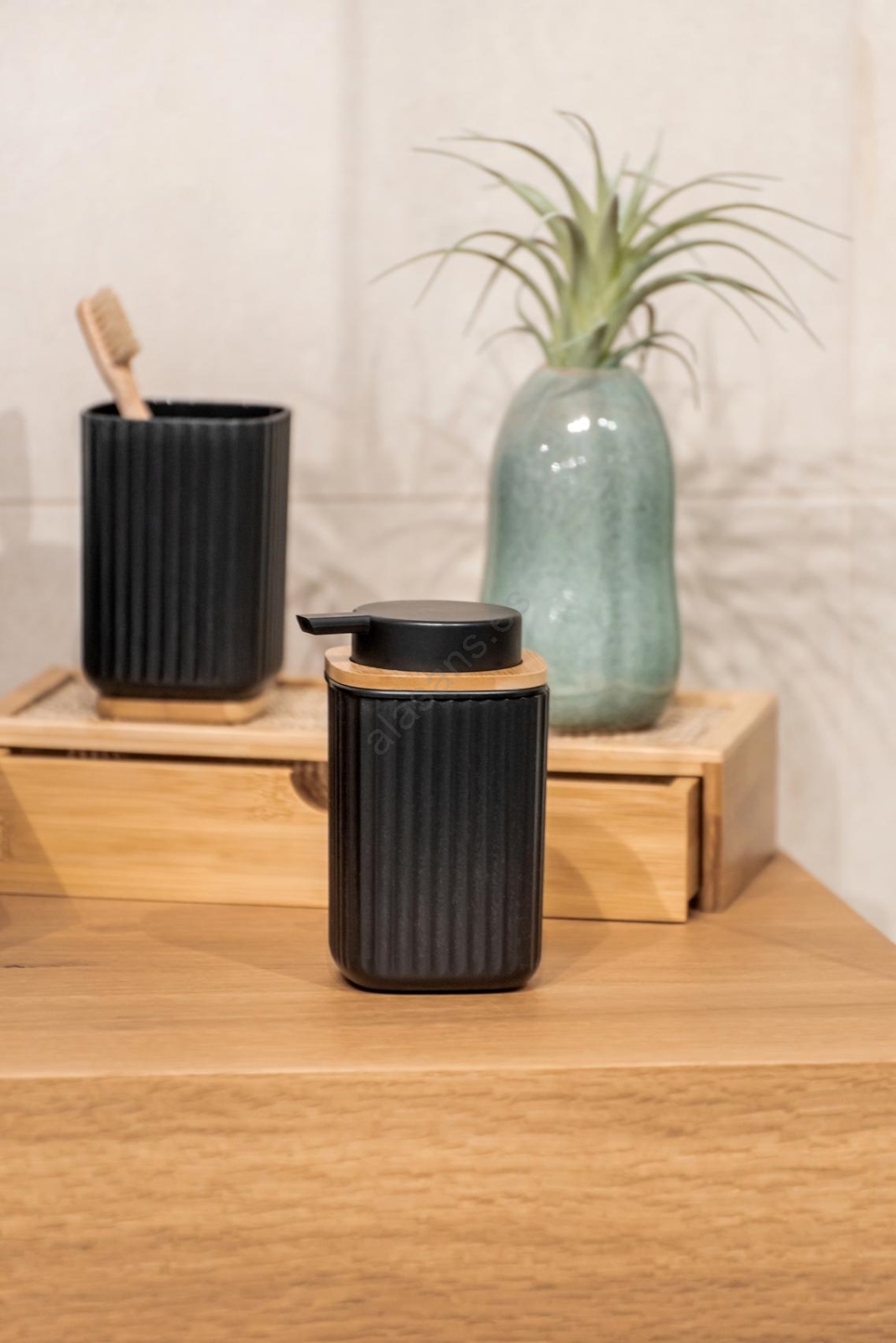 • Fabricado en plástico de calidad combinado con bambú renovable de rápido crecimiento.