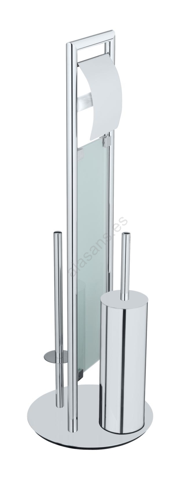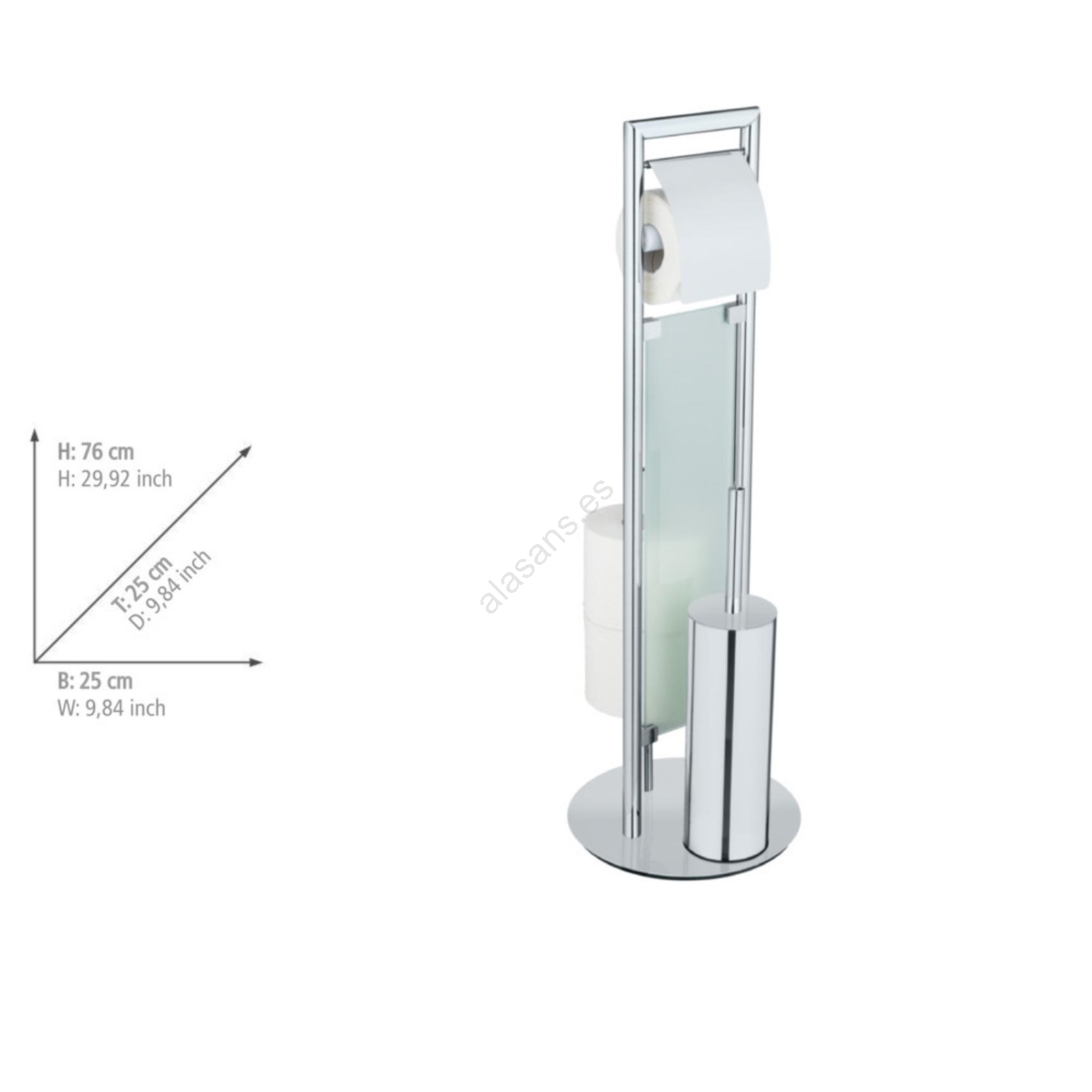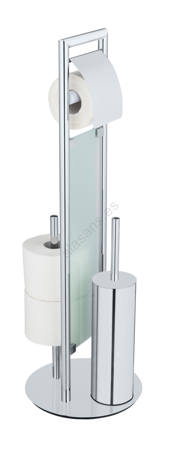 • Combina una escobilla para inodoro con contenedor cerrado, portarrollos y depósito para rollos de repuesto.