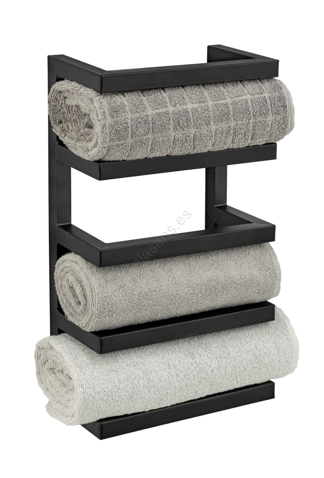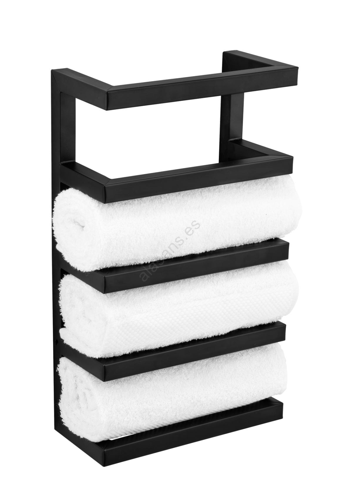 • Toallero de pared de diseño elegante en acabado negro mate.