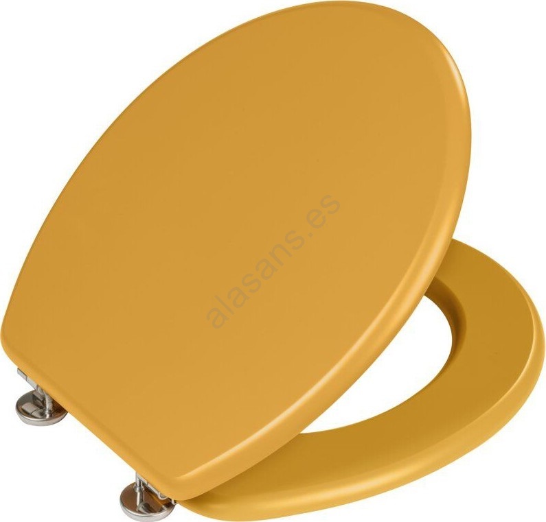 • Asiento de inodoro de diseño retro con acabado en color mostaza mate.