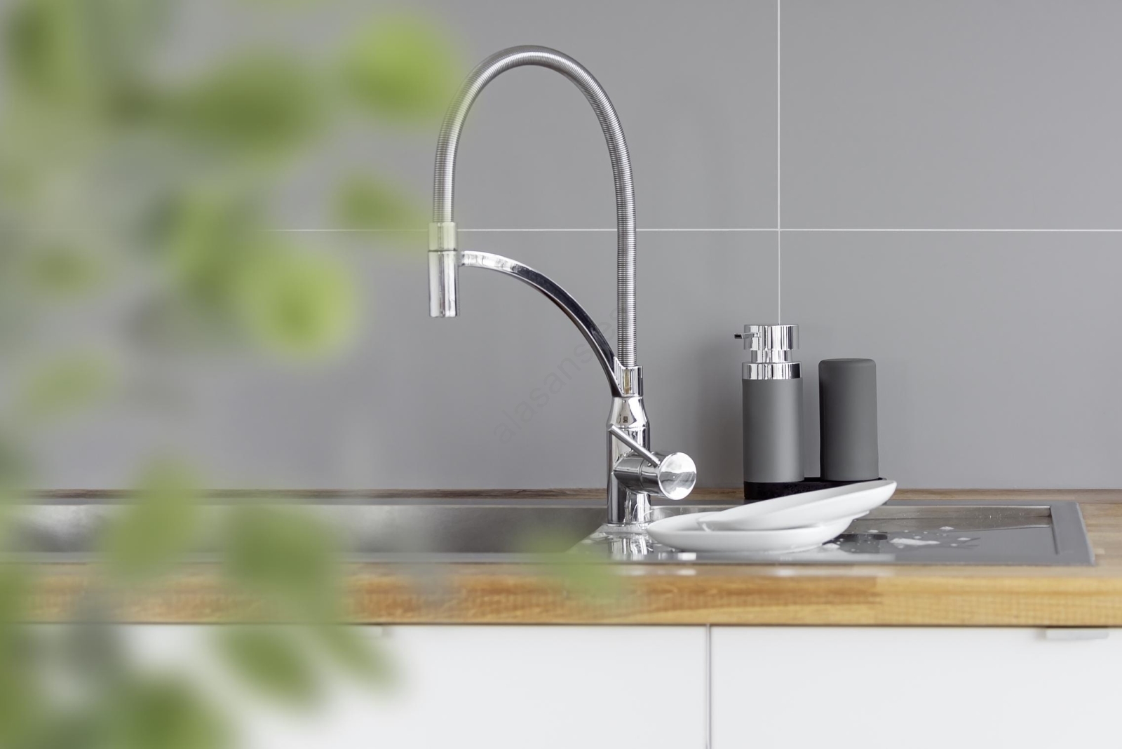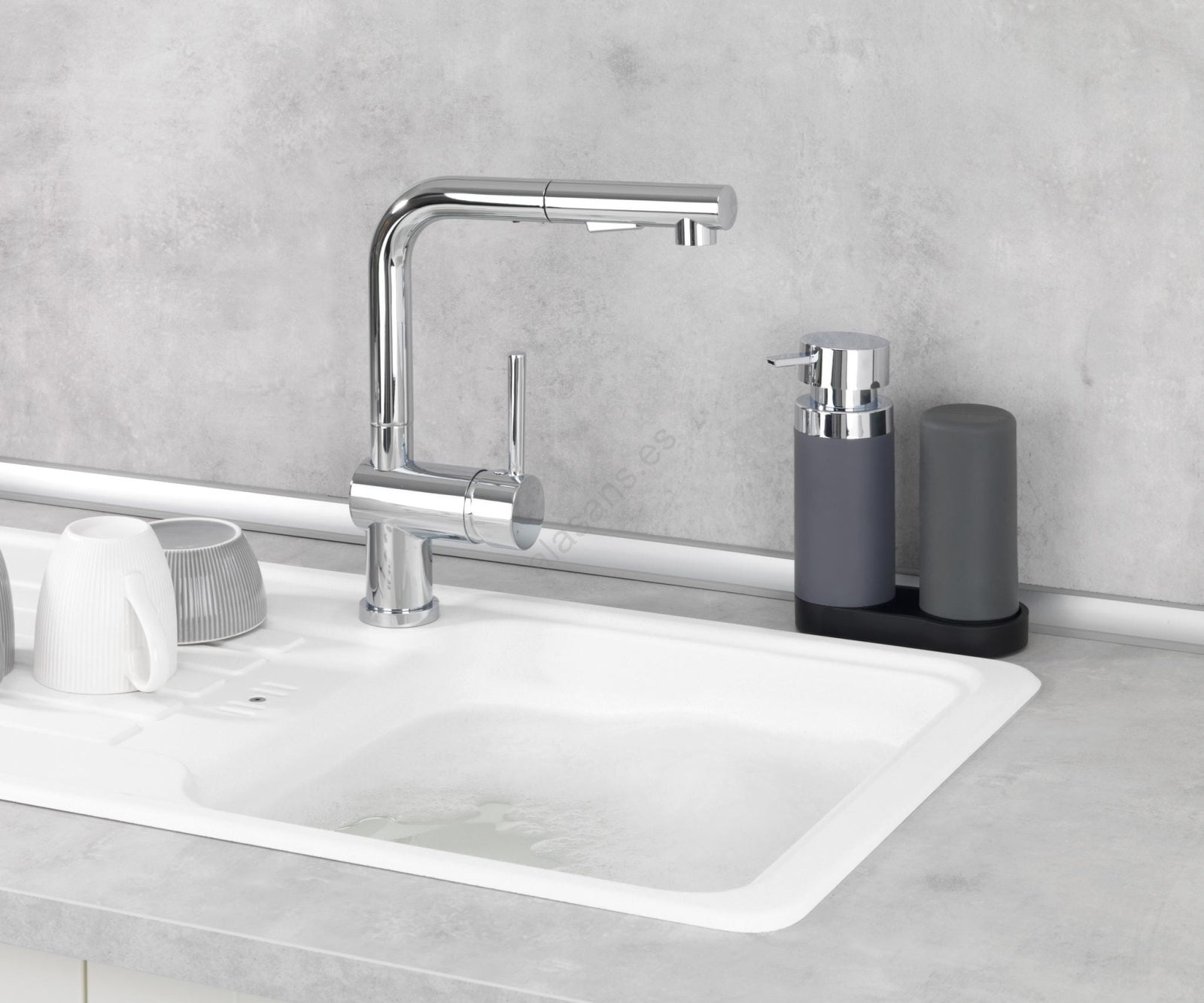 • Diseño delgado que aprovecha idealmente el espacio estrecho detrás del fregadero.
