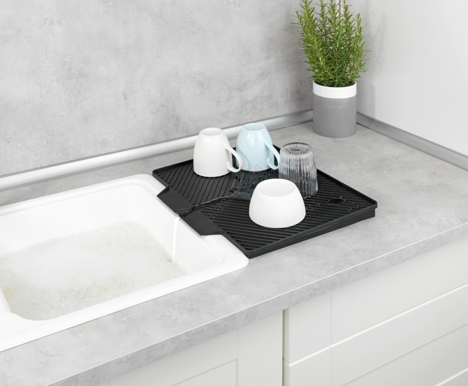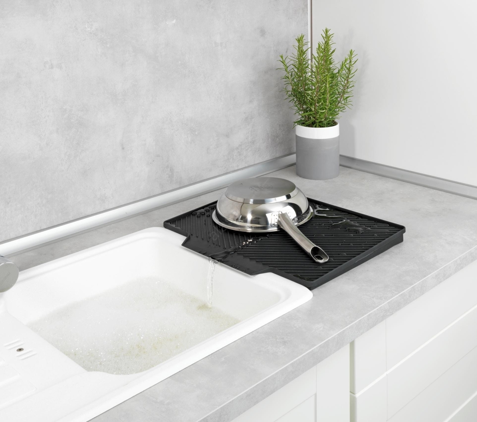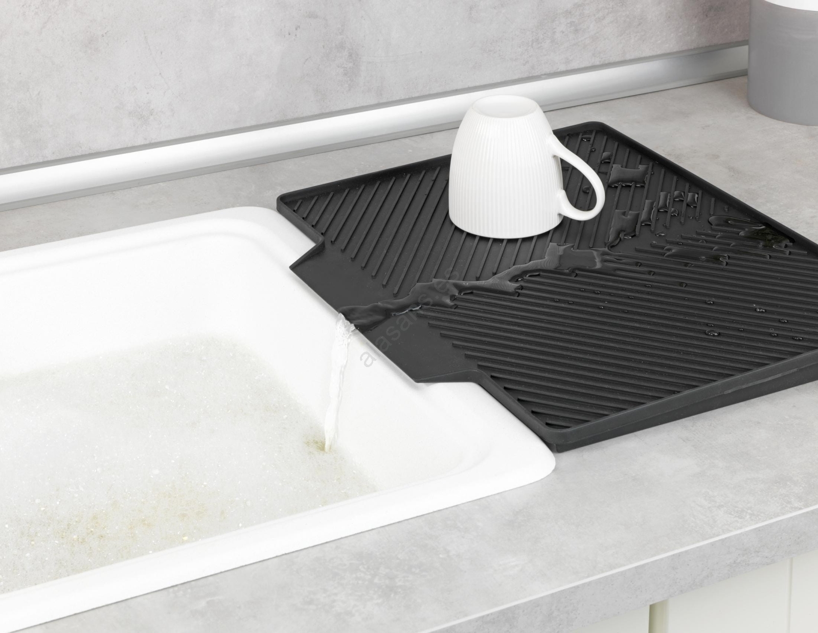 • La superficie inclinada y la estructura ranurada garantizan un desagüe continuo hacia el fregadero.