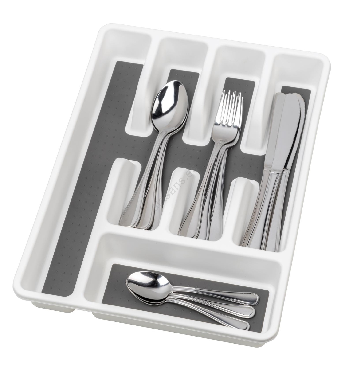 • El acabado antideslizante en todos los compartimentos garantiza un almacenamiento estable de los cubiertos.