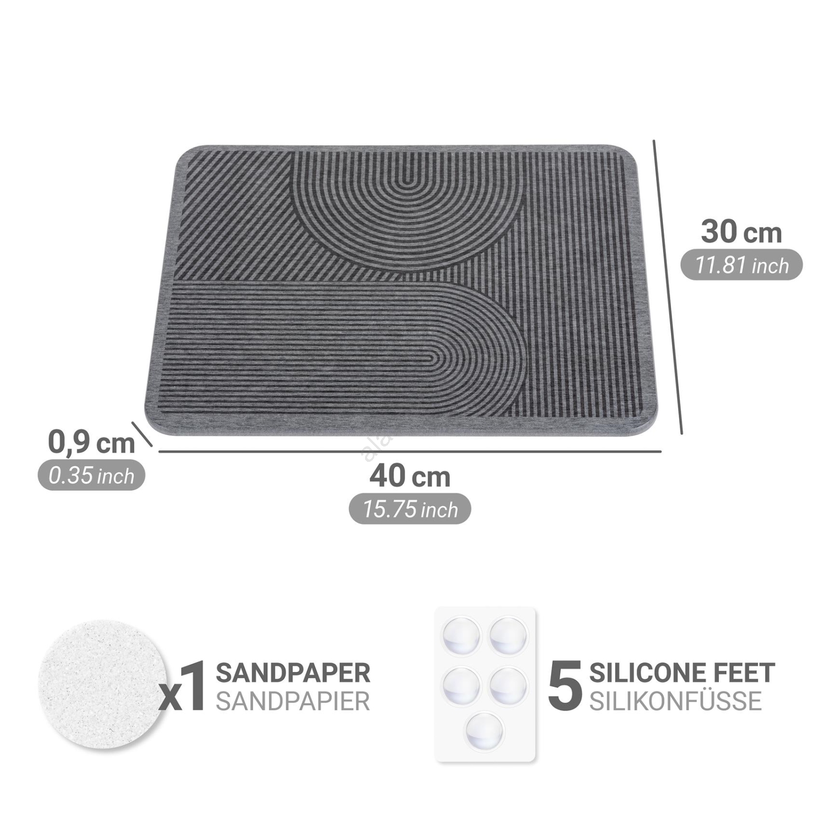 • Hecho de un material natural de alta calidad: diatomita, con una capacidad de absorción excepcional.