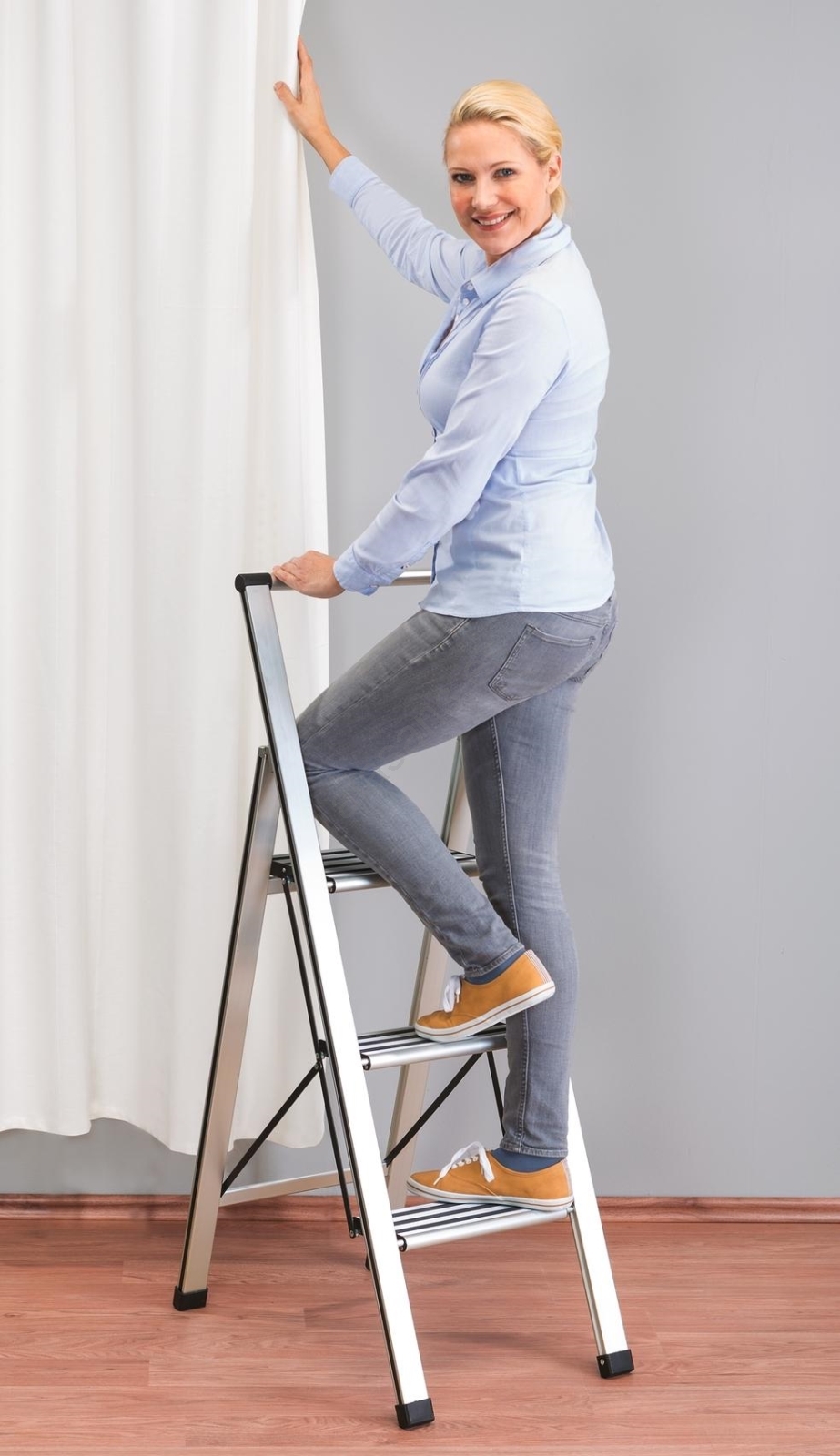 WENKO 601011100 - Escalera ALU-DESIGN 44 x 101 cm, plateada/negra