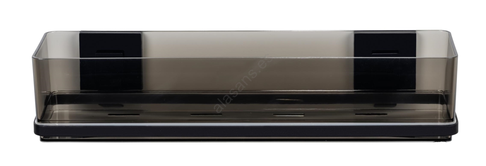 • Repisa negra transparente con un diseño elegante.