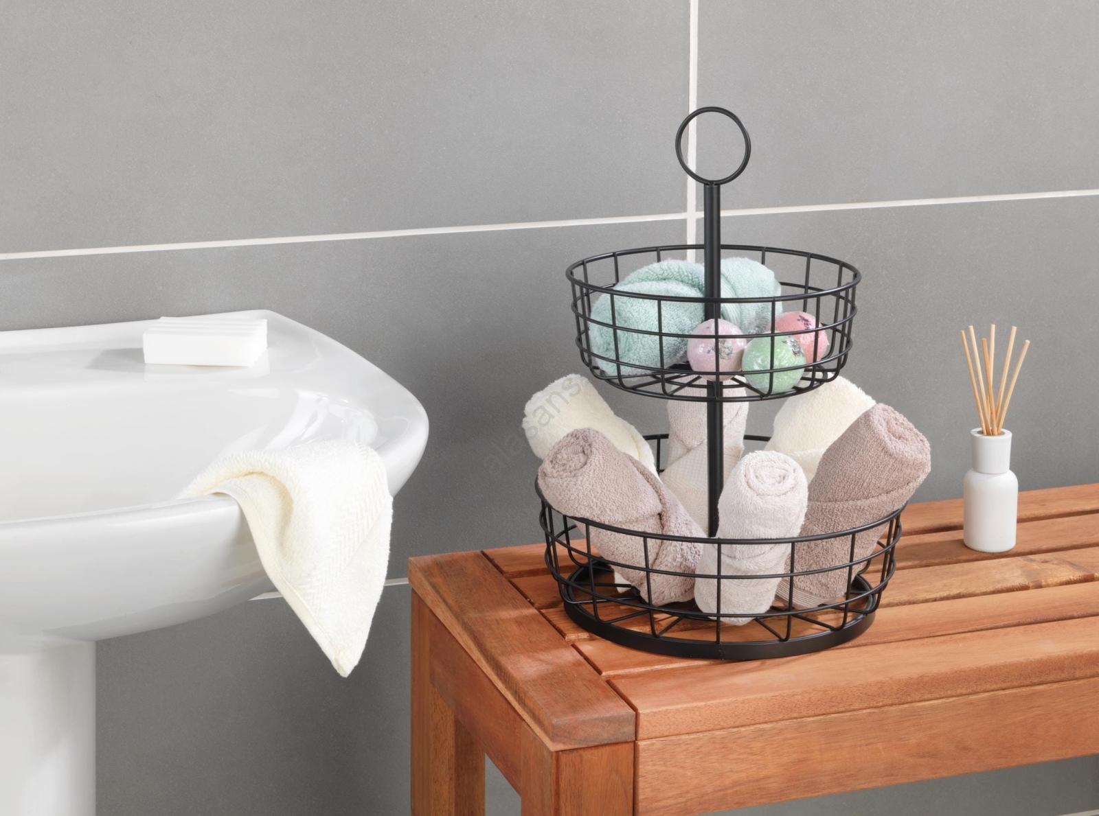 • Dos cestas circulares de distintos tamaños ofrecen amplio espacio de almacenamiento.