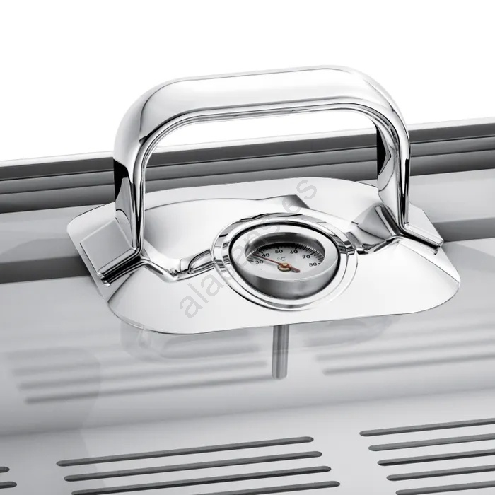 • Tapa de vidrio con borde sellador de silicona y termómetro integrado – retiene el vapor y permite controlar la temperatura.