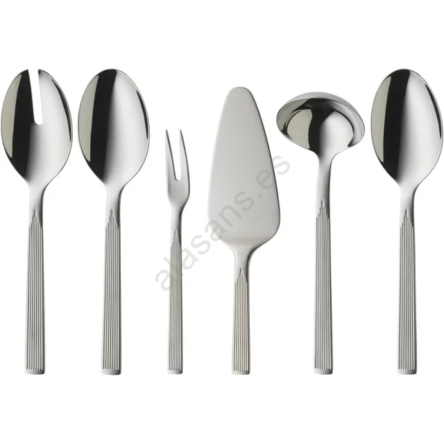 • Diseño llamativo estilo art déco – los elementos decorativos en las empuñaduras combinados con líneas limpias aportan un aire de elegancia a la mesa.