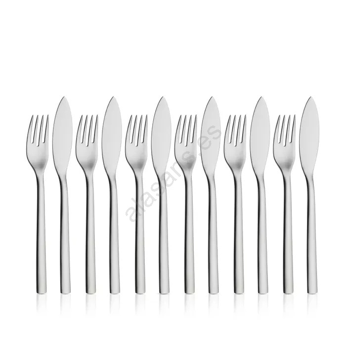 • Juego especial de 12 cubiertos diseñado para servir pescado – incluye 6 cuchillos y 6 tenedores.