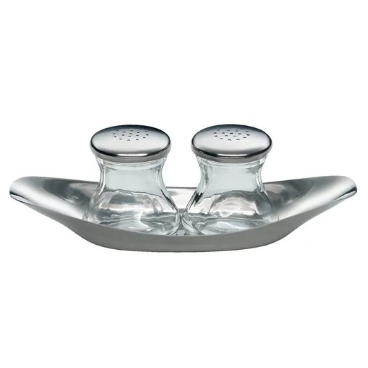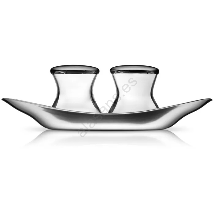 • Set de tres piezas que incluye salero, pimentero y una elegante bandeja de servicio.