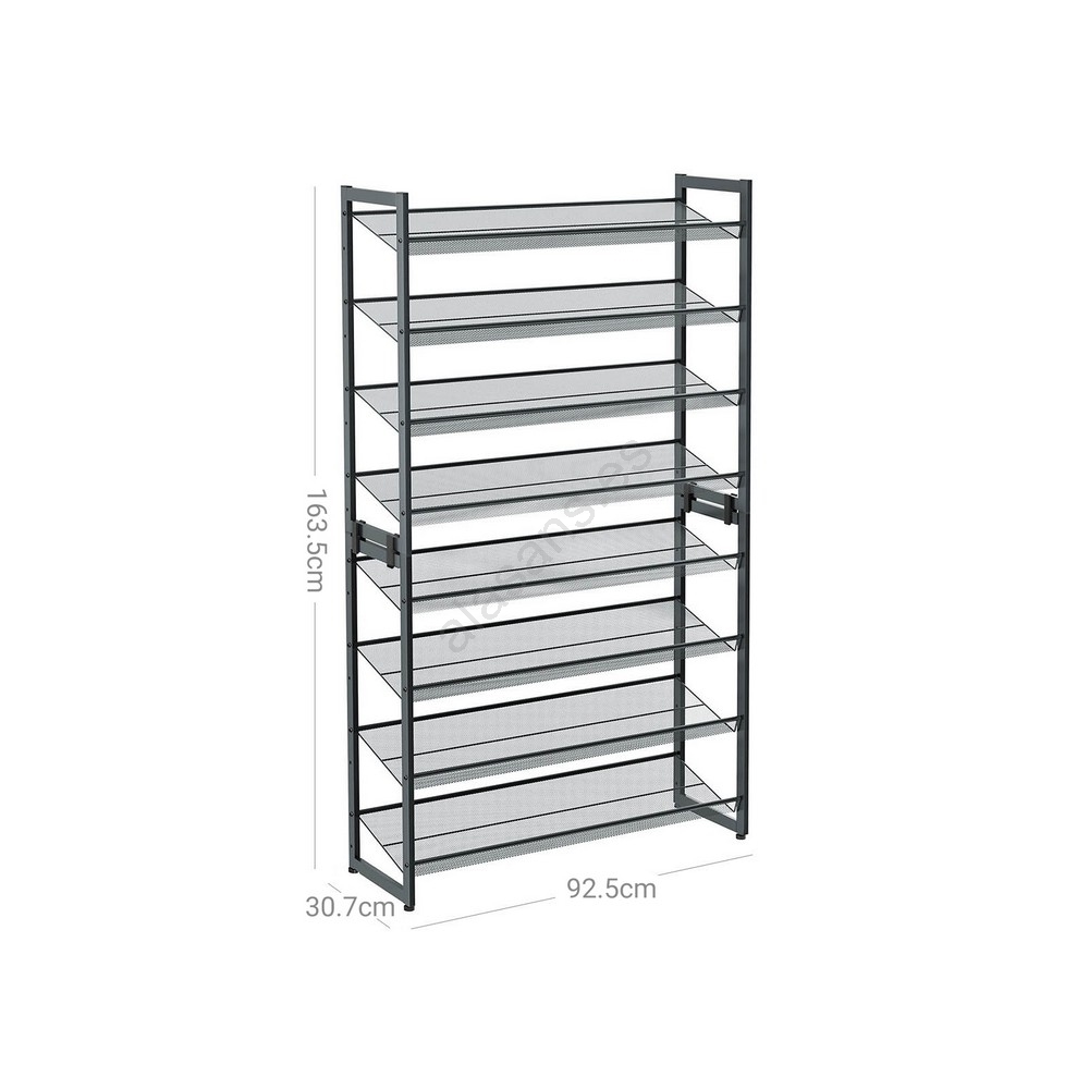 • Gracias a su silueta esbelta, este zapatero de 8 niveles ocupa poco espacio en el suelo y, al mismo tiempo, ofrece amplio espacio de almacenamiento.