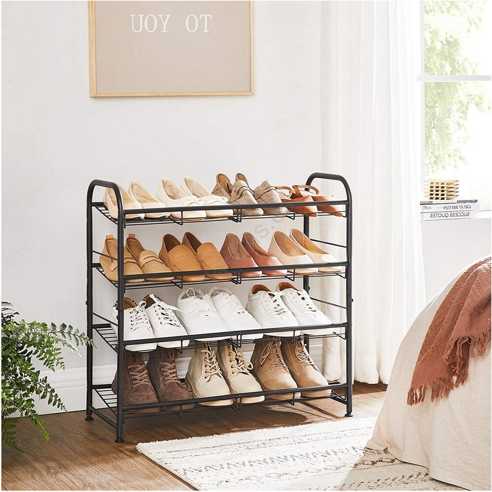 • Gracias a su silueta compacta, este zapatero de 4 niveles ocupa poco espacio en el suelo y, al mismo tiempo, ofrece un amplio espacio de almacenamiento.