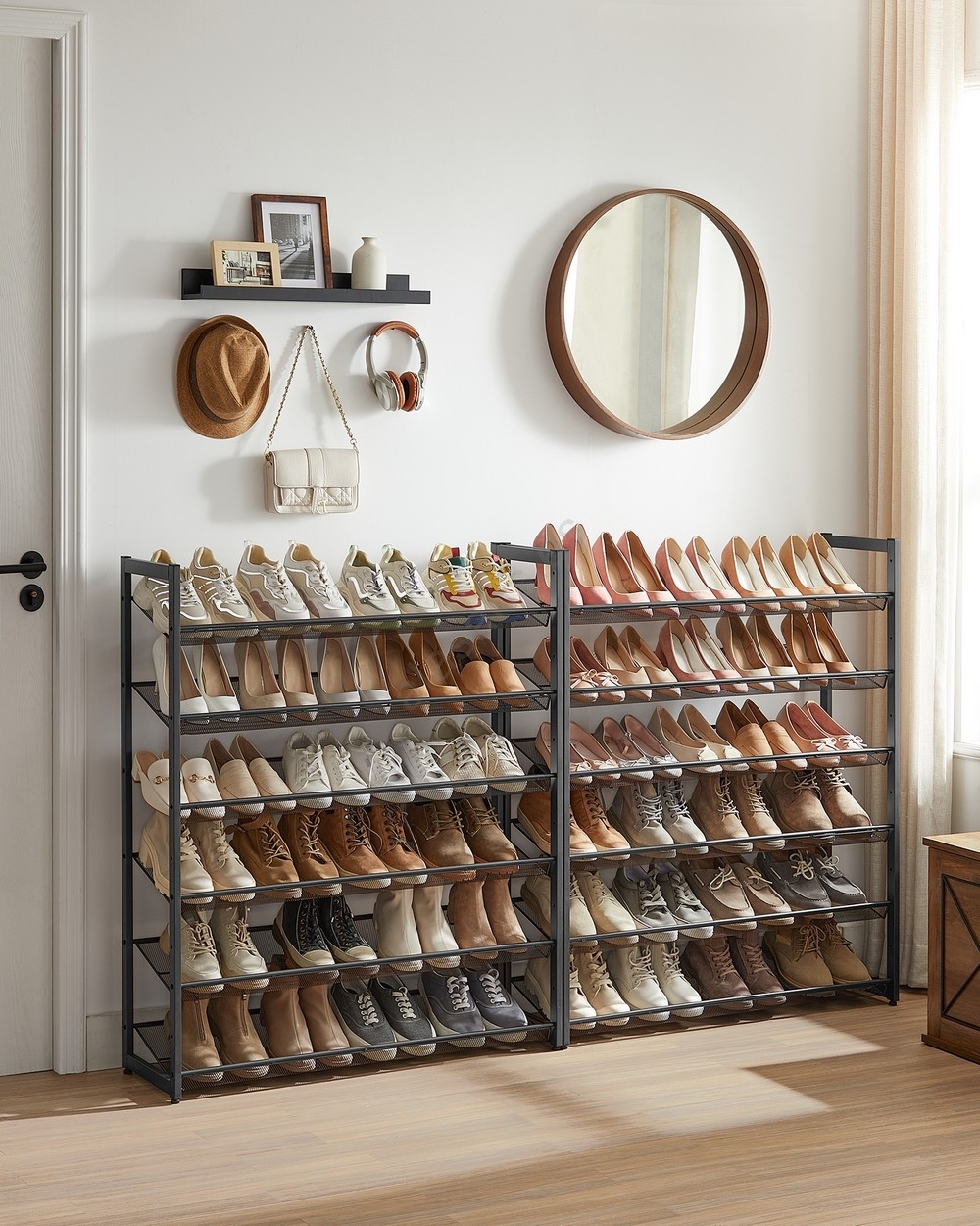 • Con una altura de 18,5 cm entre estantes, hay espacio para zapatillas, tacones e incluso botas altas.