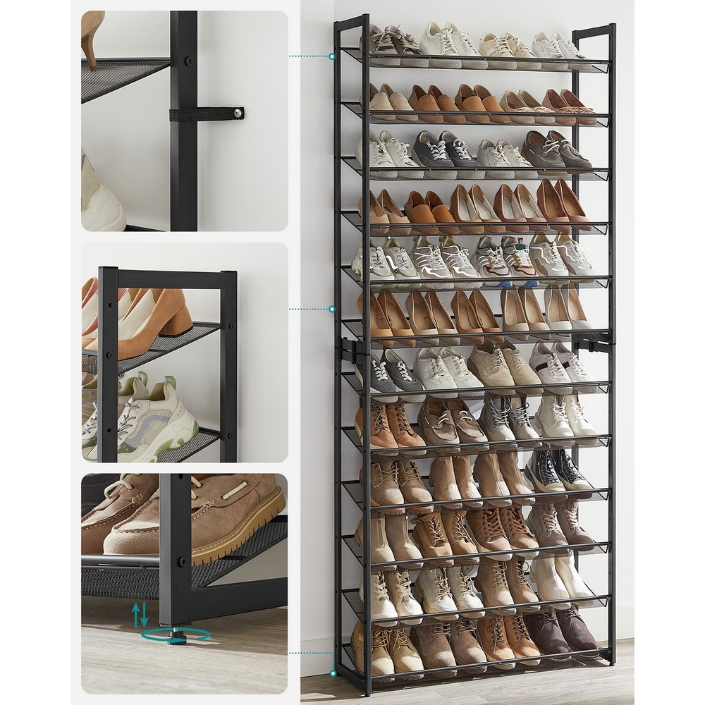 • Gracias a su perfil estrecho, este zapatero de 12 niveles ocupa poco espacio en el suelo y, a la vez, ofrece amplio espacio de almacenamiento.