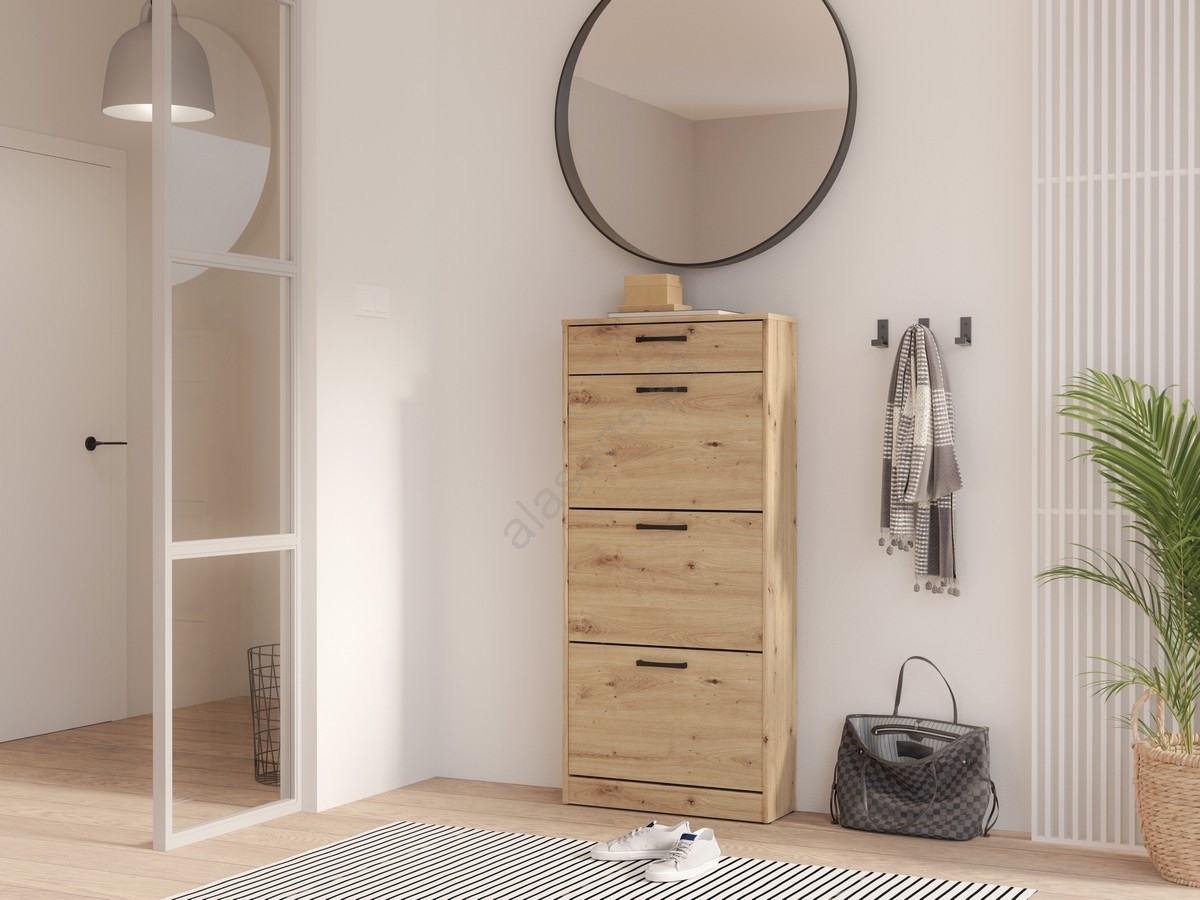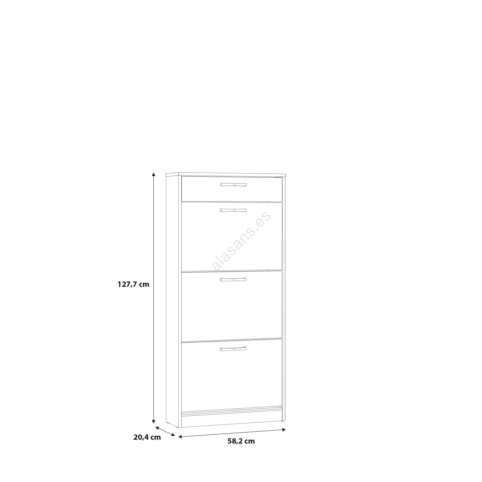 • Gracias a su silueta estrecha, este zapatero de 4 niveles ocupa poco espacio en el suelo y, aun así, ofrece un amplio espacio de almacenamiento.