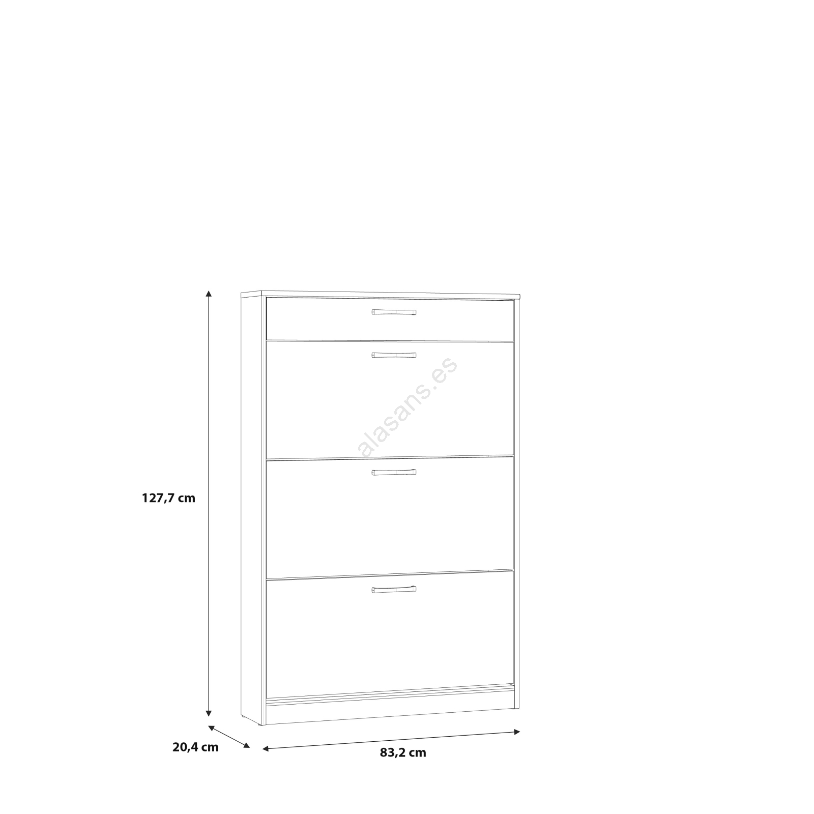 • Gracias a su silueta esbelta, este zapatero de 4 niveles ocupa poco espacio en el suelo y, al mismo tiempo, ofrece amplio espacio de almacenamiento.