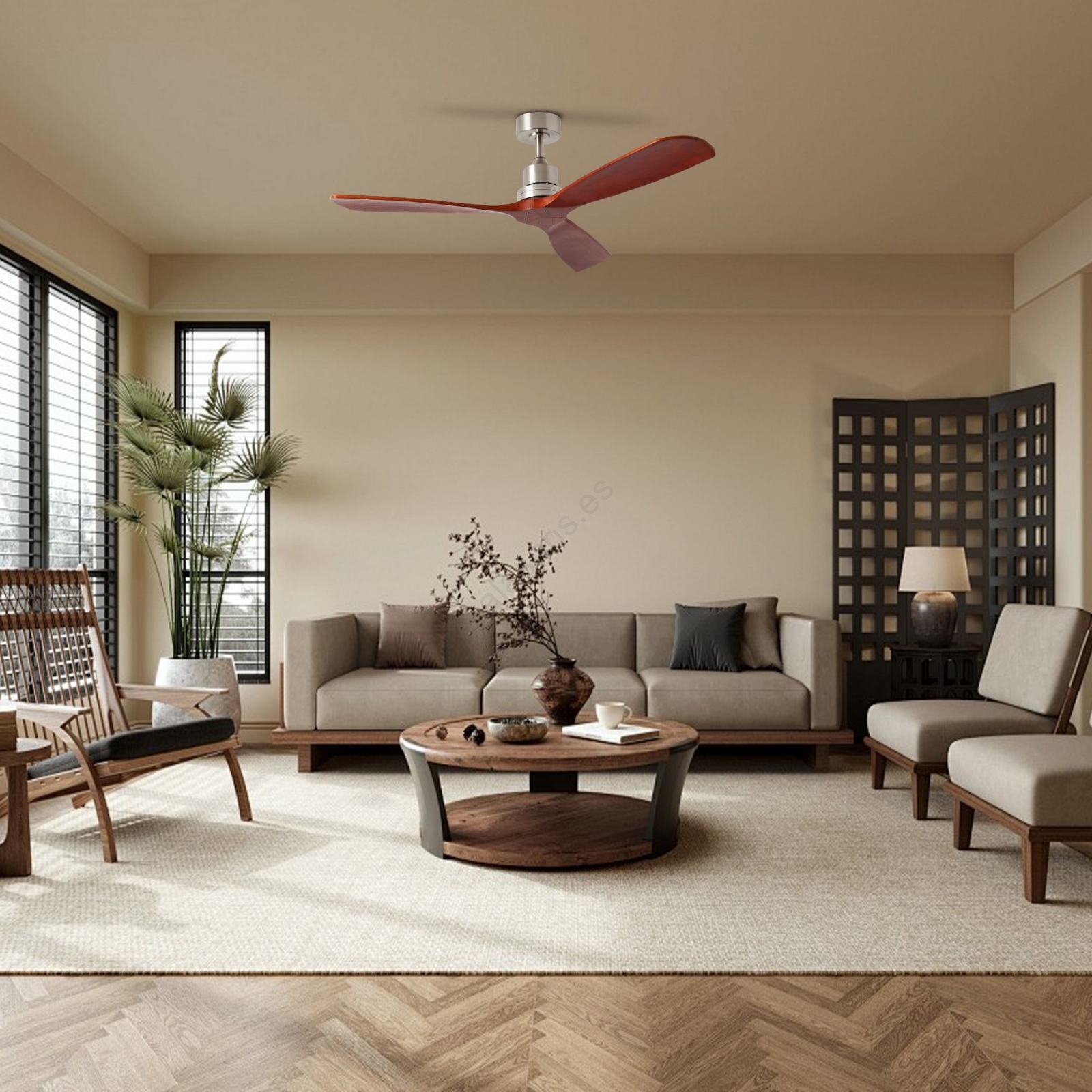 ZEVENTI - Ventilador de techo LIONI Wi-Fi Tuya cromo mate/roble + mando a distancia