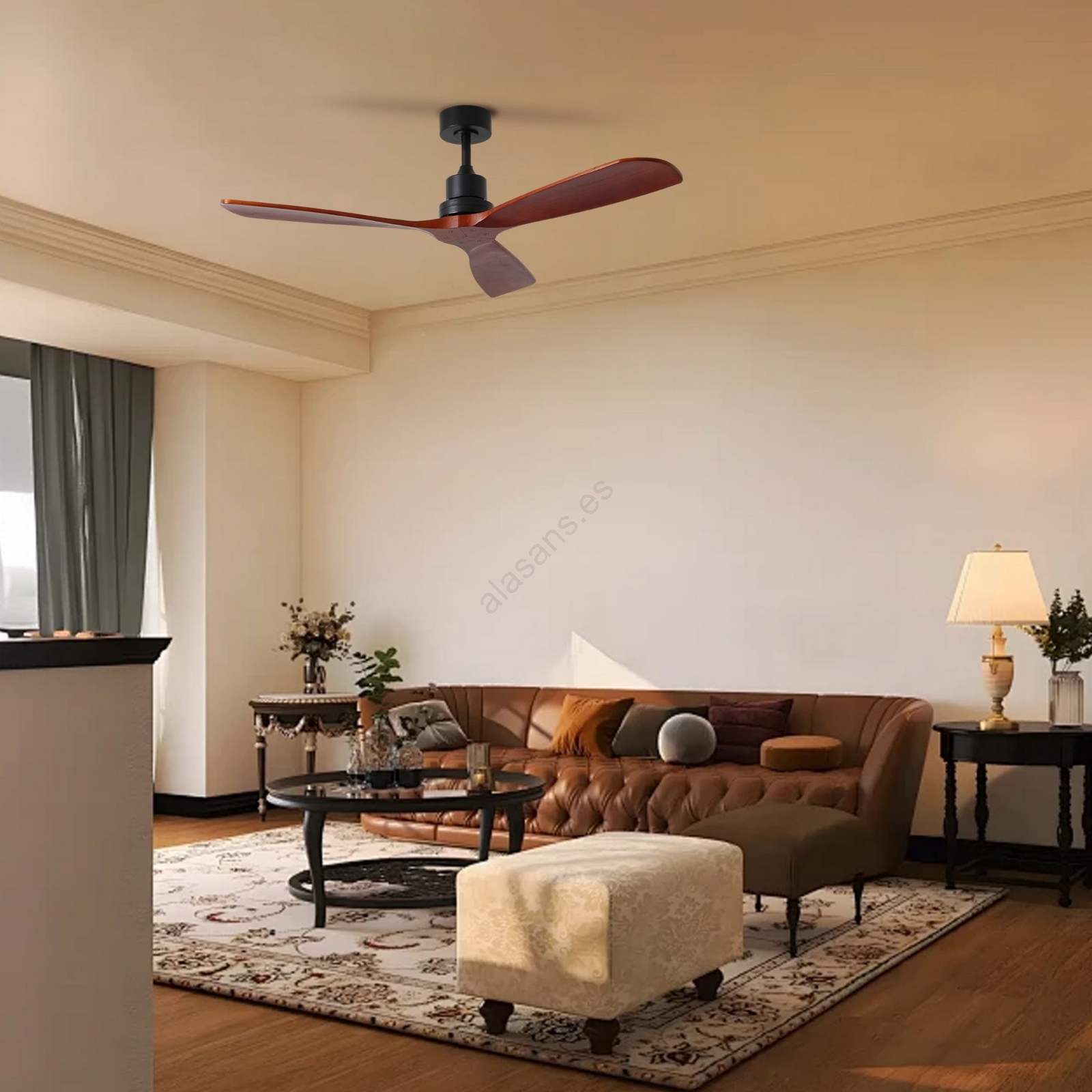 ZEVENTI - Ventilador de techo LIONI Wi‑Fi Tuya negro/roble + control remoto