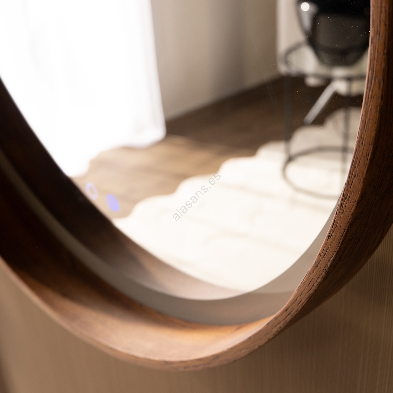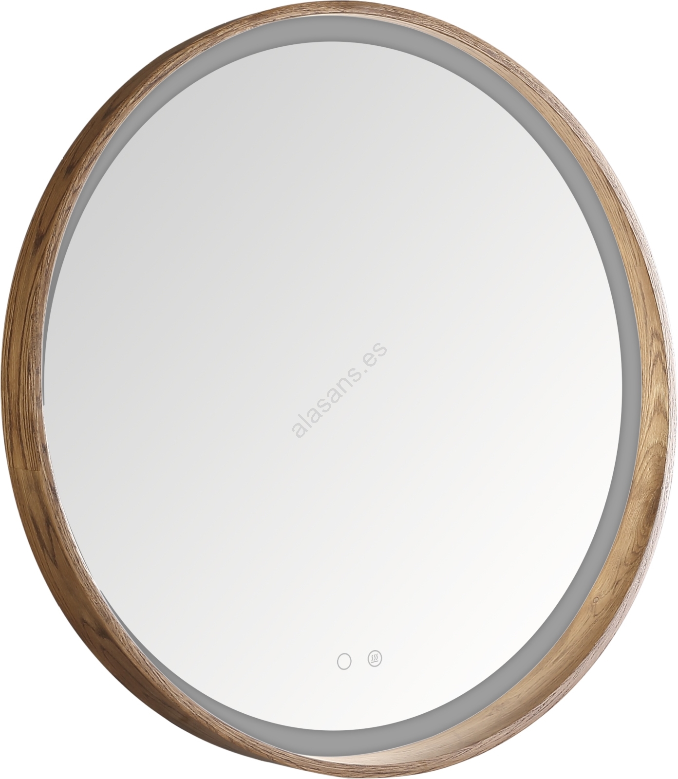 Zuma Line - Espejo calefactable de pared para baño retroiluminado LED, 36W, 230V, 3000/4000/6000K, Ø 80 cm, IP44, roble