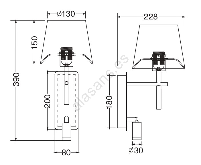 • Lámpara de pared de diseño práctico con dos fuentes de luz.